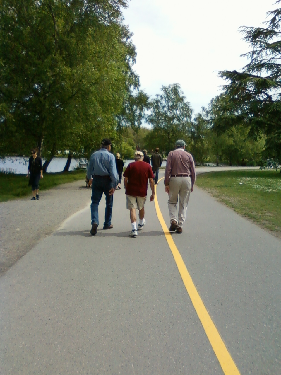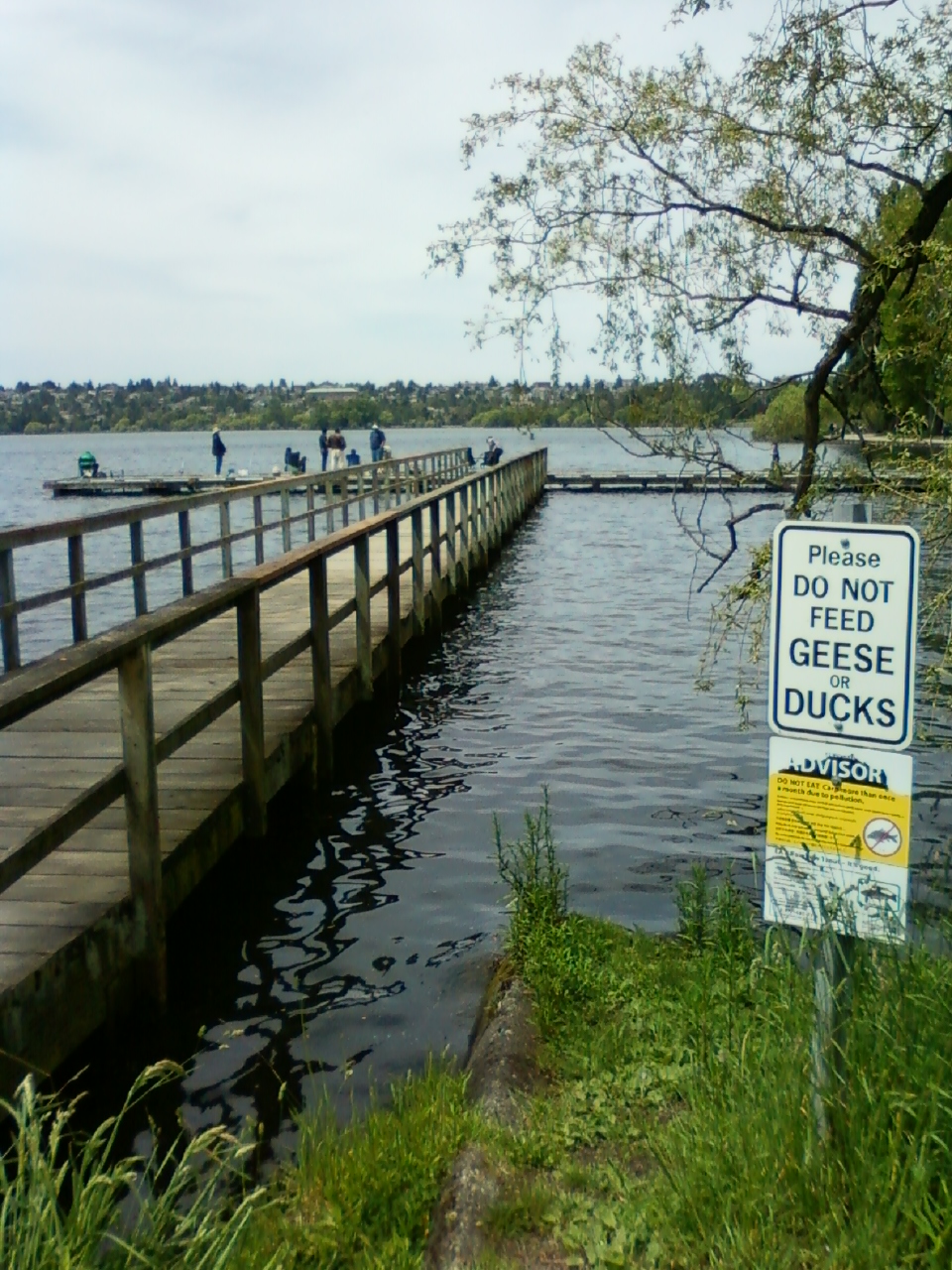 A range of race, nationality, every age..from baby to elderly, dress…whether it be fitness, jeans or workwear (I actually saw someone walking in a business suit), and all lifestyles…moms with their children in strollers (a lot of these), family, friends, co-workers, those getting in their daily (or periodic) walk or run, rollerblading, frisbee, and those walking (or running) their dogs (and there are all kinds)…I loved this as I like dogs.  There are those that are picnicking or sunning themselves, boat rentals, people watching while feeding a squirrel (not recommended), birdwatching, fishing, playing with a motorized boat, reading a book (while walking) or sipping coffee, bicycling, playing tennis, basketball, those having a group meeting or class, and children playing at the playground (and wading pool when it gets warmer).  I especially enjoyed seeing three older gents taking a stroll, getting their exercise, and enjoying conversation.  Rowing, sailing, canoeing, and kayaking classes can be had at the Green Lake Small Craft Center.  And for your art fix – the Seattle Public Theater at the Bathhouse http://seattlepublictheater.org/ offers community-based theater in an intimate setting.