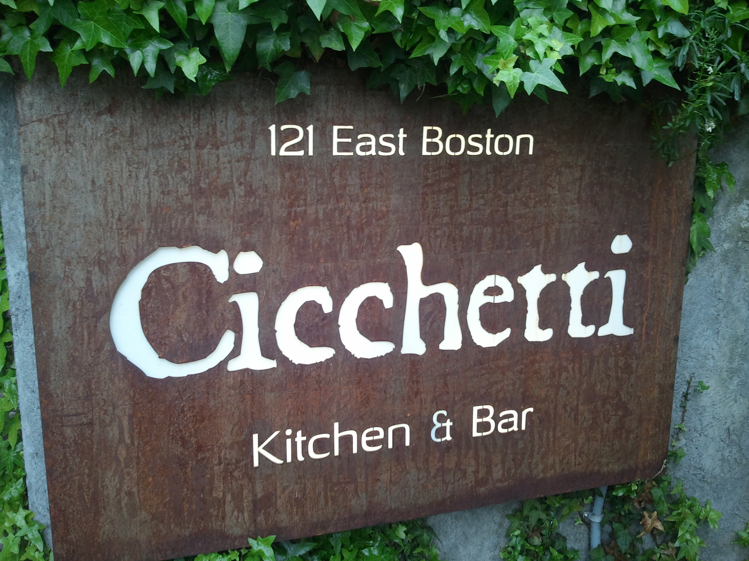 Cicchetti kitchen & bar, located on E. Boston St. in Seattle, is a great spot for small plates with an authentic Mediterranean flare. Cicchetti, pronounced (chi-KET-tee), means a small snack or plate of food. Think Venice, Italy. It is located behind Serafina, its big sister. The restaurant/bar layout, air flow, a wood-fired oven, rustic/artistic decor, and a little outdoor seating gives this space a great neighborhood feel. The service (Tyler) was great and I especially liked the open kitchen to view the hustle and bustle.