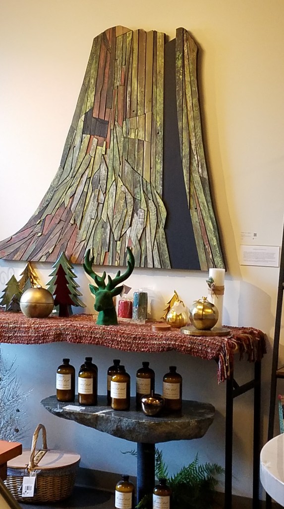 Another visit might include a stay here. The Lodge has 84 rooms and also hosts space for meetings, special events like a wedding, and has spa services. The local art shown among lodge/park is impressive. My personal favorite was the ‘Rivan Stump’ piece by Robert Williamson; made of salvaged wood with brass nails. One day. You can see these beauties behind the front desk too.